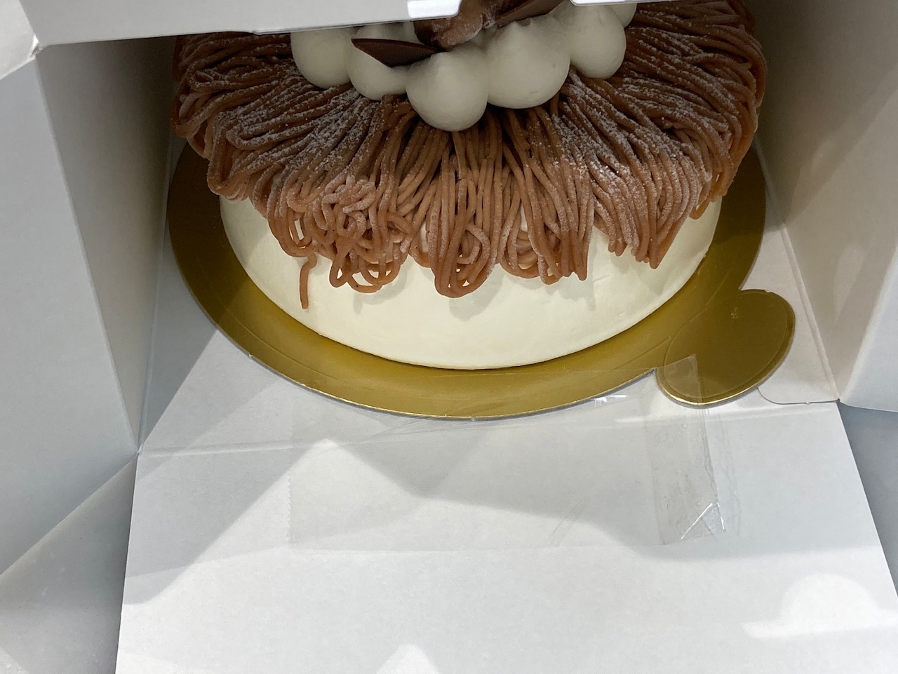 ※お箱を開ける際は片側だけを開けて金台紙についてるテープをはがし、箱を一度閉じてから、反対側の箱を開けて、同じく金台紙についてるテープをはがしてください。両サイドを同時にあけると、ケーキがつぶれてしまいます。