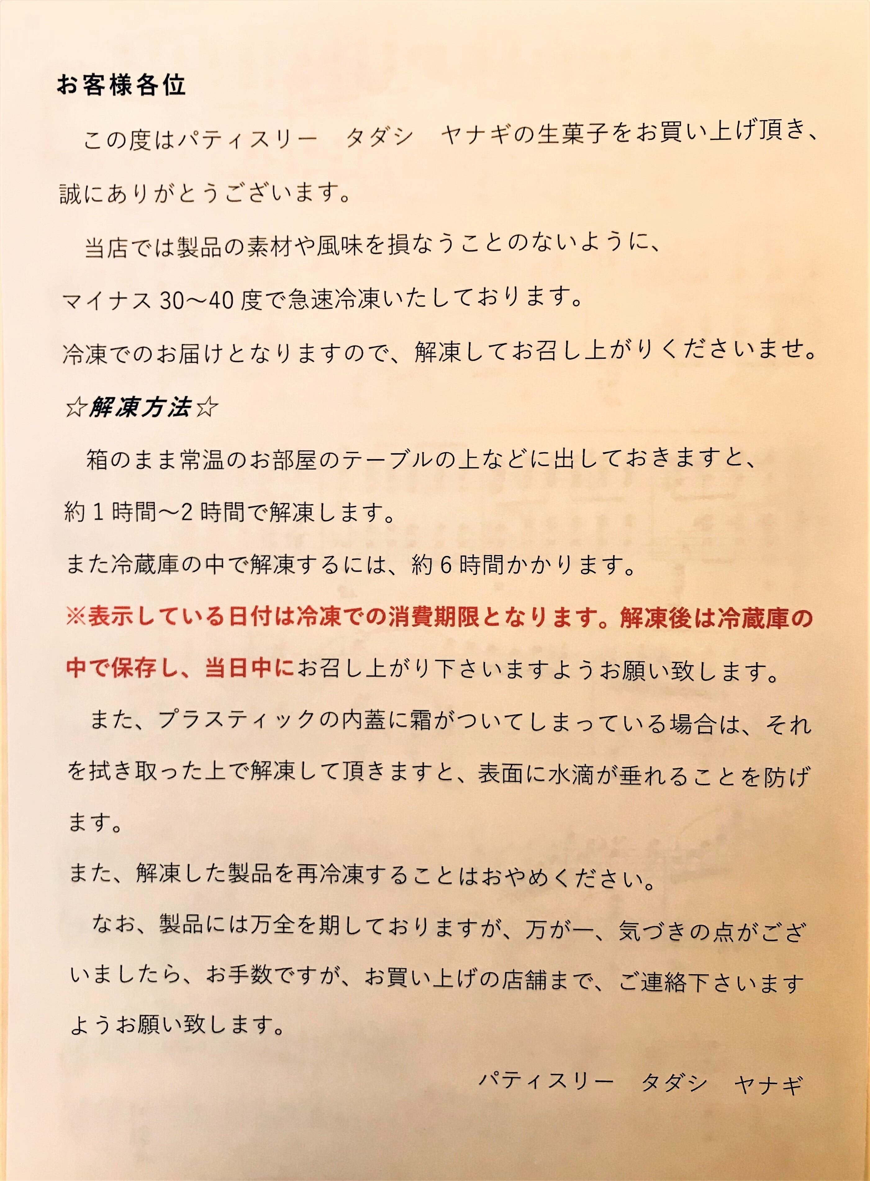 ※お箱を開ける際は片側だけを開けて金台紙についてるテープをはがし、箱を一度閉じてから、反対側の箱を開けて、同じく金台紙についてるテープをはがしてください。両サイドを同時にあけると、ケーキがつぶれてしまいます。